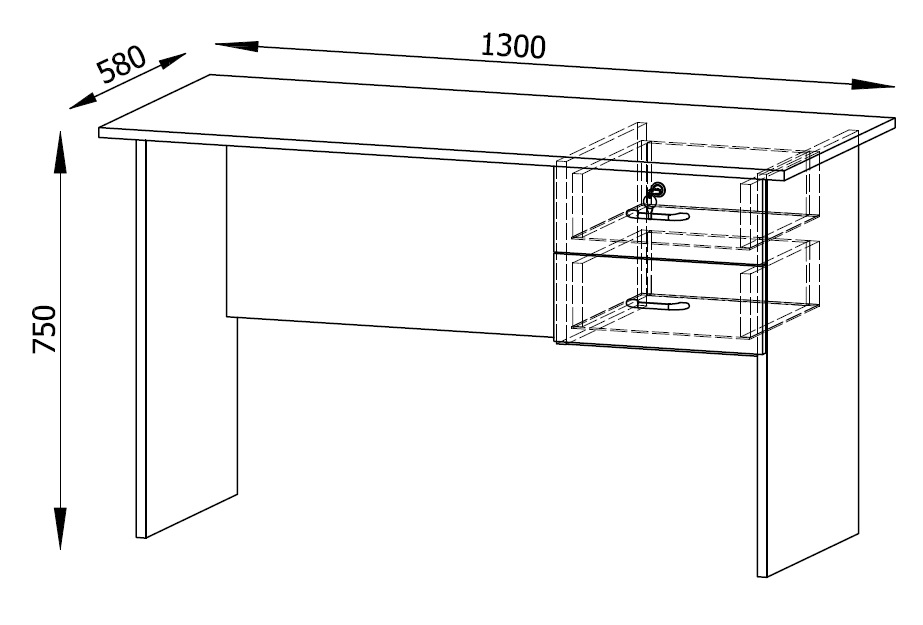 Wymiary blatu: 1300 x 580 mm.