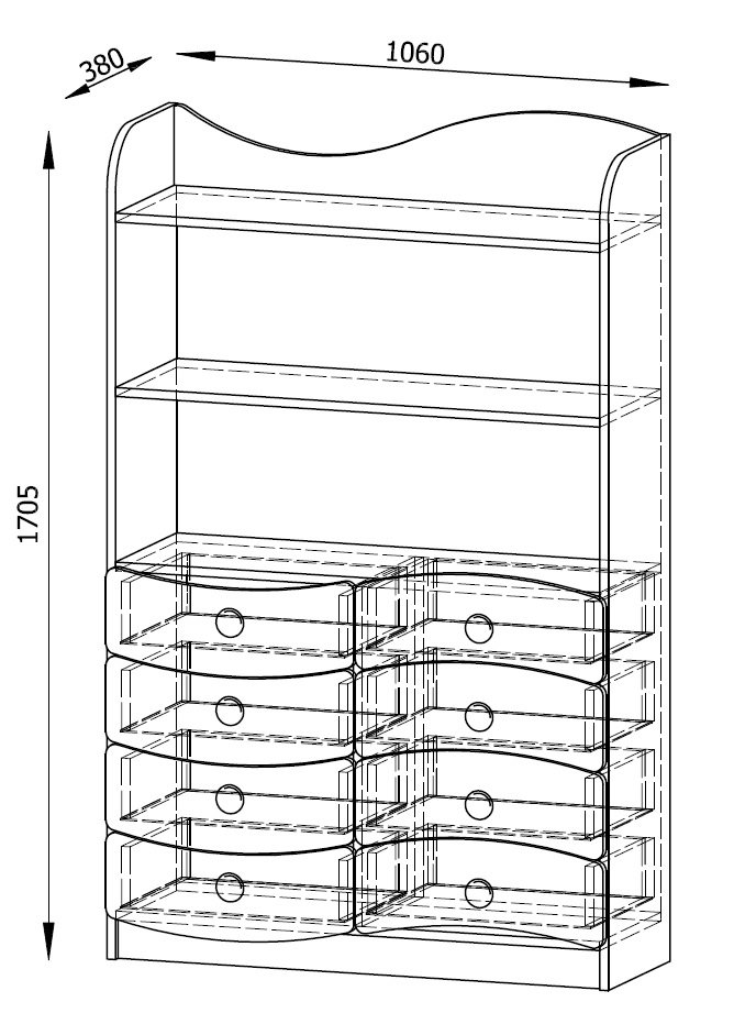 Wymiary: 1060 x 380 x 1705 mm.