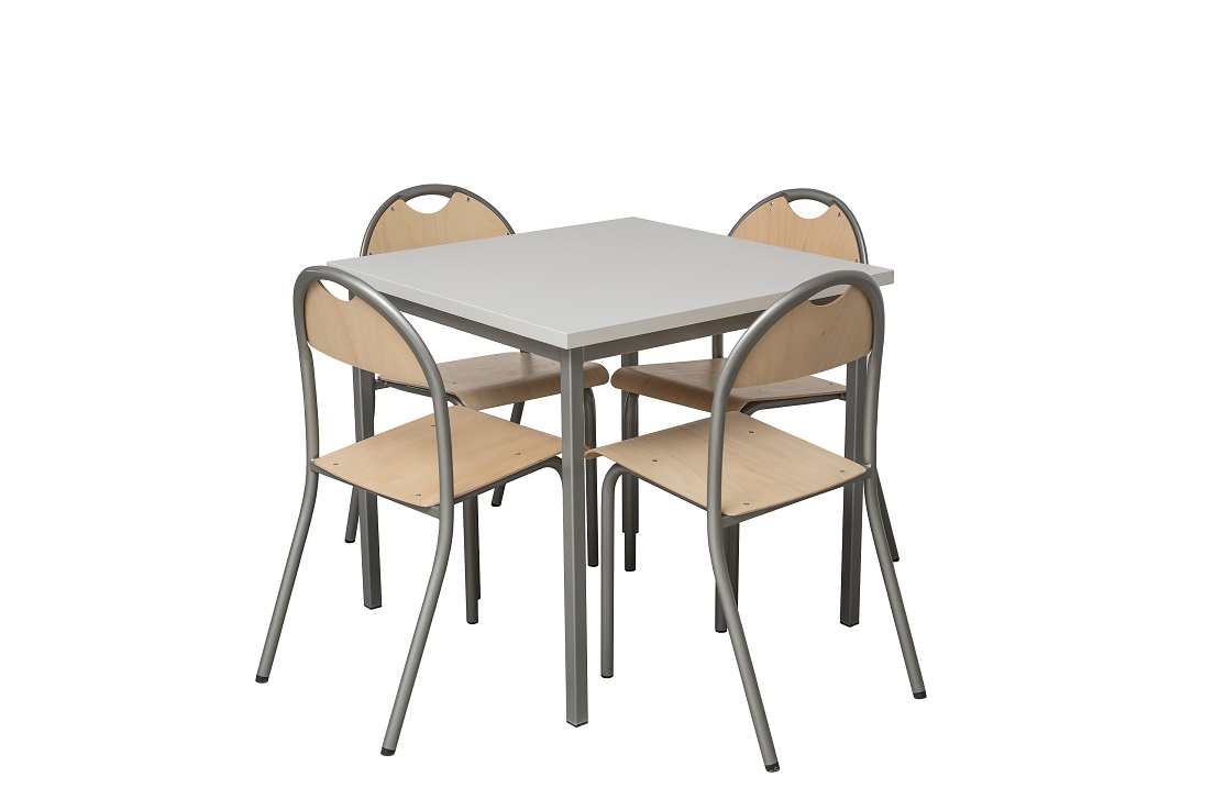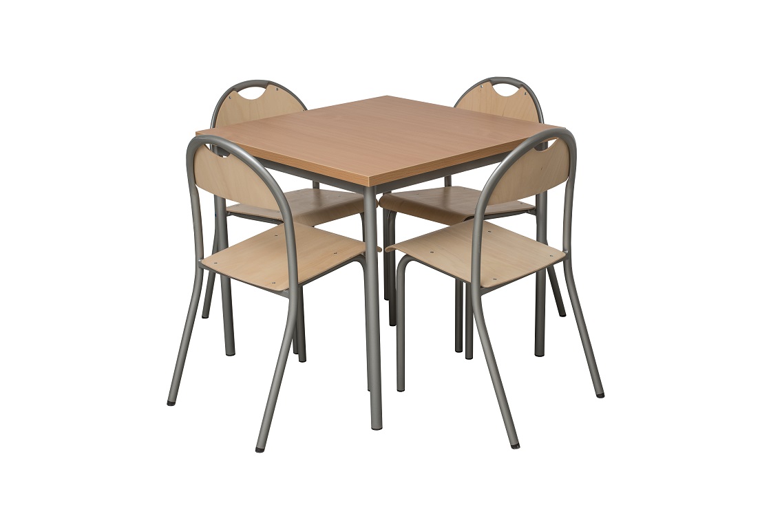 Stół KUBA z blatem o wymiarze 800 x 800 mogący znaleźć zastosowanie w stołówkach, jadalniach lub świtlicach szkolnych.