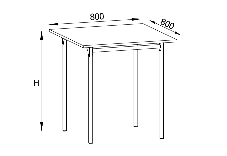 Wymiary blatu: 800 x 800 mm.