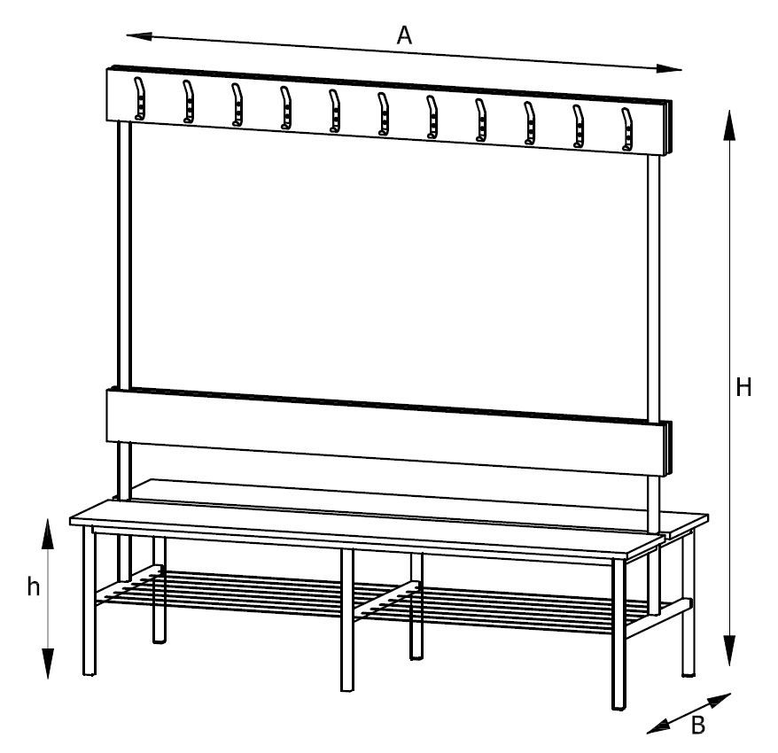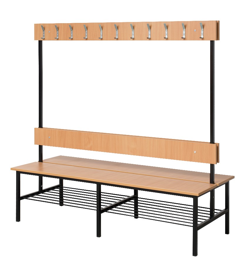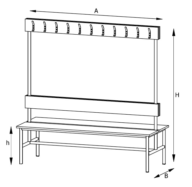 Siedzisko, oparcie oraz listwa wieszaka wykonana z płyty laminowanej grubości 18 mm z doklejką PCV 2 mm.