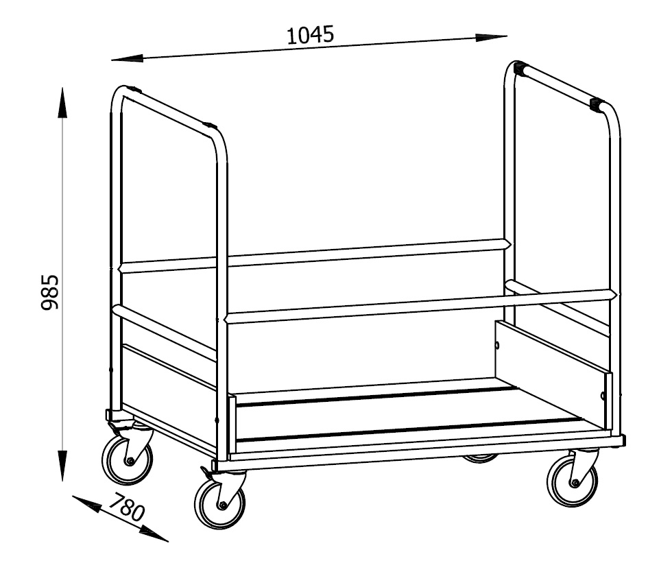 Duże koła ułatwiają swobony transport przy maksymalnym obciążeniu wózka.